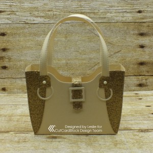 As soon as I found out about this weekender handbag die set, I had to have it! Not to mention the sunglasses die set… I had to have that set too, lol! Both die sets have coordinating stamp sets but I couldn’t work either one of those into this project… but will definitely use them in the foreseeable future, so stay tuned! I cut the purse body pieces from Neenah Classic Linen Gold Pearl cardstock, and the purse accent pieces and sunglasses pieces from CCS Gold Glitter cardstock. I cut the sunglasses lenses and another set of sunglasses pieces from Pop-Tone Hot Fudge cardstock for added stability. I assembled the sunglasses first because they are so stinkin’ cute! I adhered the gold glitter cardstock pieces to the brown cardstock pieces, sandwiching the lenses between the open eye pieces. I did this just to make the sunglasses a little sturdier. I then assembled the purse with the gold glitter accents. I added half of a Velcro circle as the closure under the center flap, and ivory enamel dots to the accent pieces just above the rings. Here are angled and full frontals and a back shot.