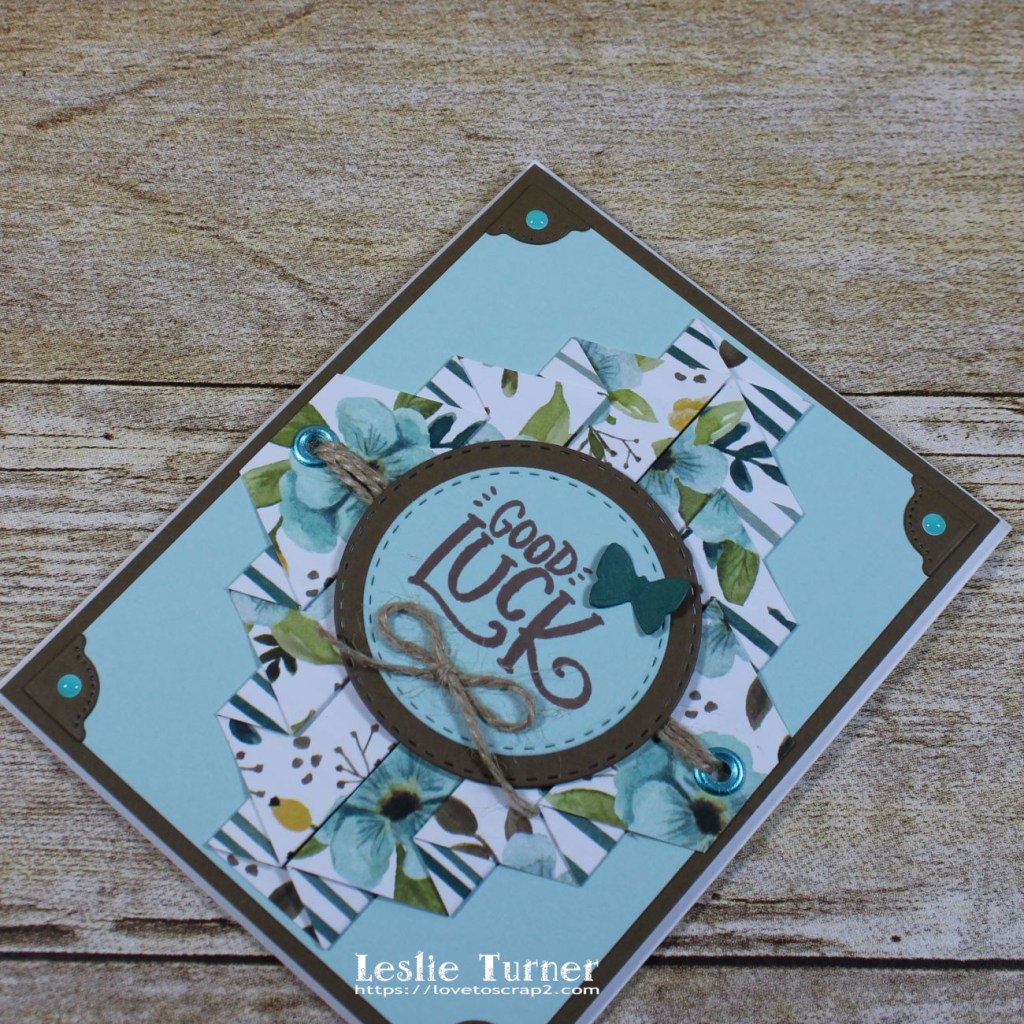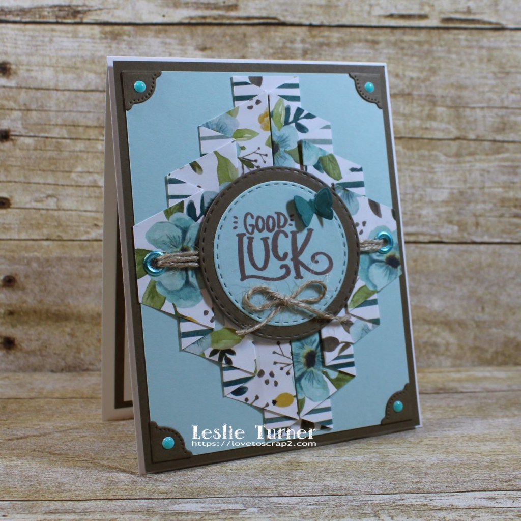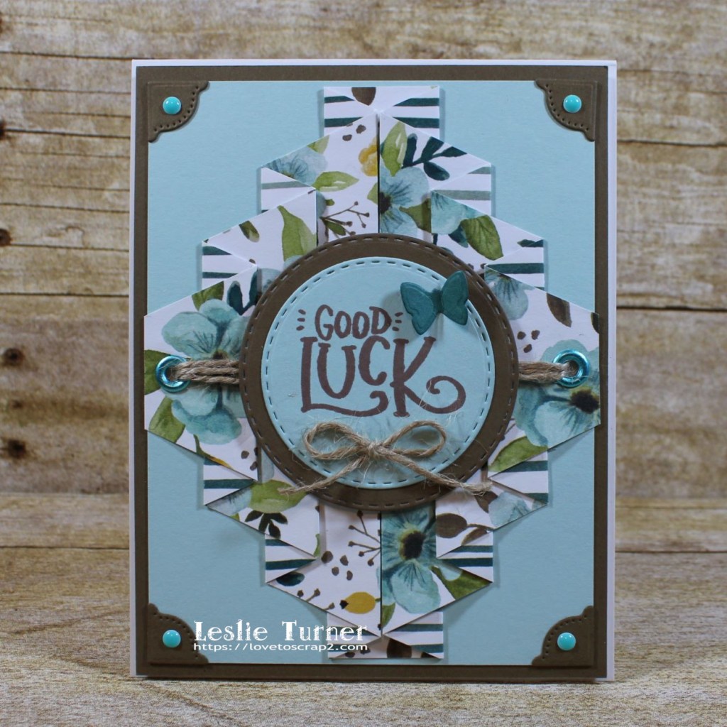 Hi friends! A very Happy Monday to you – I hope your weekend was amazing! Affiliate links are used in this post at no cost to you. I really appreciate your support! I’ve popped in this morning with a card I created for The Outlawz June Crash Your Stash Challenge! My daughter has been dealing with an unruly teenager and has been calling me every evening for advice and support, and every evening I go into my studio to talk, put her on speaker, and make a card! Not sure how or why she gives me such inspiration while dealing with this situation, but the cards come together so easily! I guess sometimes it pays not to over-think the designs! This Good Luck card features the fun pleated fold (which I haven’t done in ages) that was introduced to me years ago when I was a Stampin’ Up demonstrator. I actually made two cards with the pleated fold – the other one is for another design team, so stay tuned! ;)