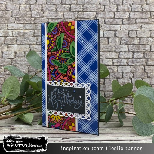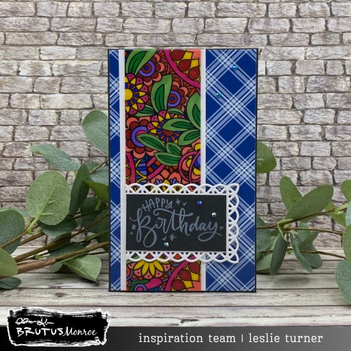 Hey everybody, happy Fri-YAY! Every day is Fri-YAY when you’re retired… there’s nothing more rewarding than being able to do whatever the heck you wanna do anytime you wanna do it! I’m delighted to share a Brutus Monroe DT inspiration project today featuring the amazing Doodle Bookmarks, Lace Layers Nested Dies, Vintage Plaid paper, and Super Sentimental stamp set. Of course, I used a boat-load of other awesome BM products to make this fun birthday mini slimline card, and I love how it turned out!