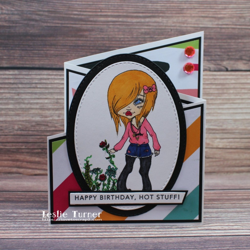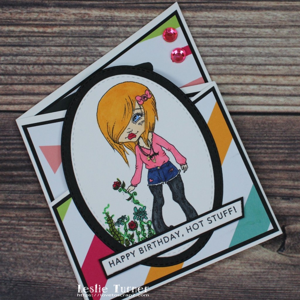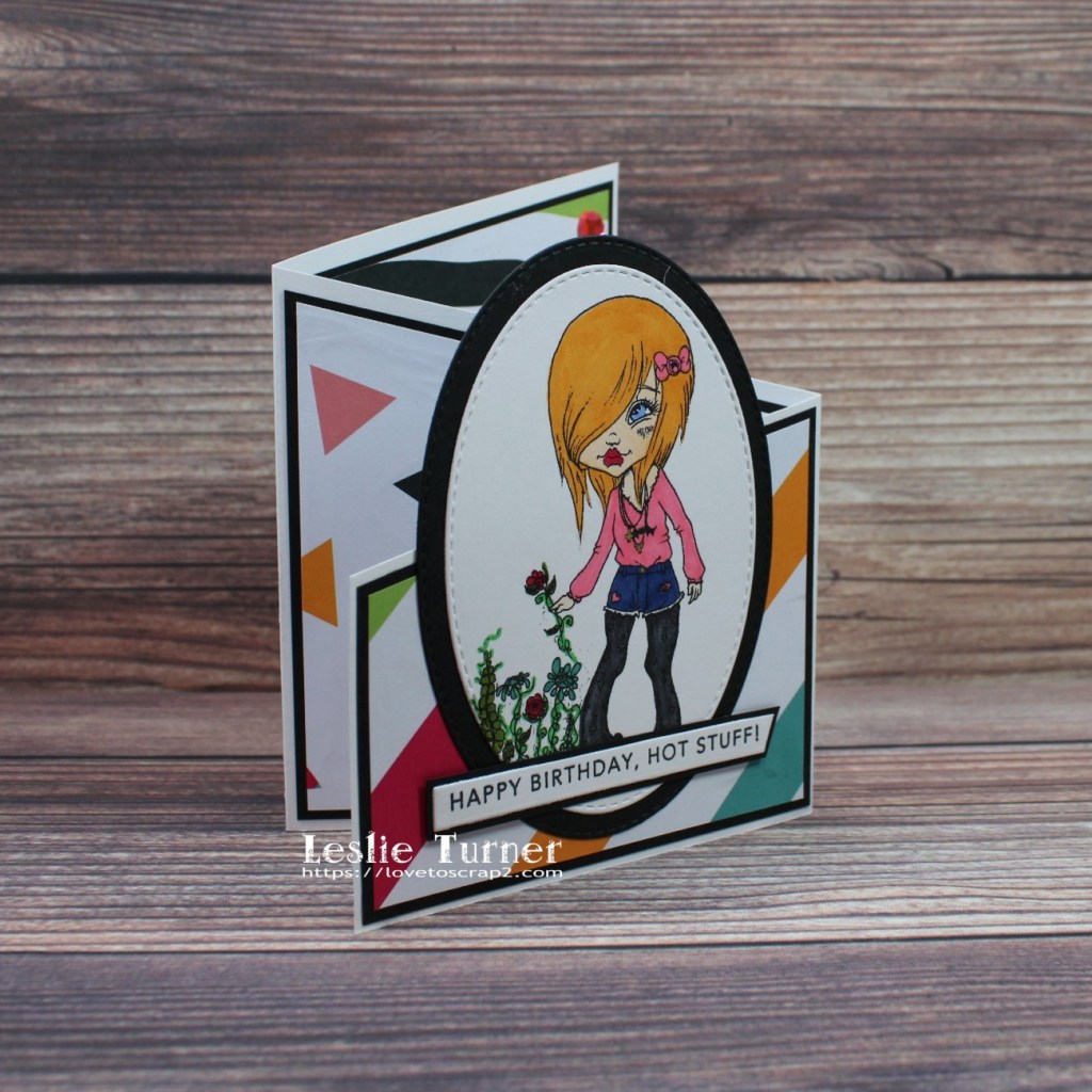 Hi friends! I hope you’re having a great day! I’ve been in my studio for a while today and thought I’d pop in this evening to share a super cute card I created for The Outlawz Challenges October Freebie/Progressive Challenge. Our sponsor this month is Oddball Art Co. and we were gifted the awesome Tiff’s Garden digital image to play with! Affiliate links are used in this post at no cost to you – I really appreciate your support! I’ve had this image printed for a couple weeks now and just couldn’t decide what kind of card I wanted to create. She’s one of Oddball’s ‘Creepy Cute Girls’ but I didn’t want to create another Halloween card, so I came up with a zig-zag fun fold birthday card!