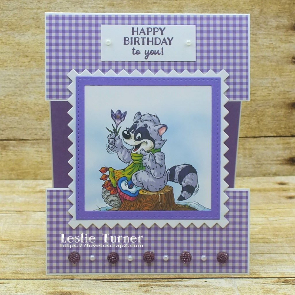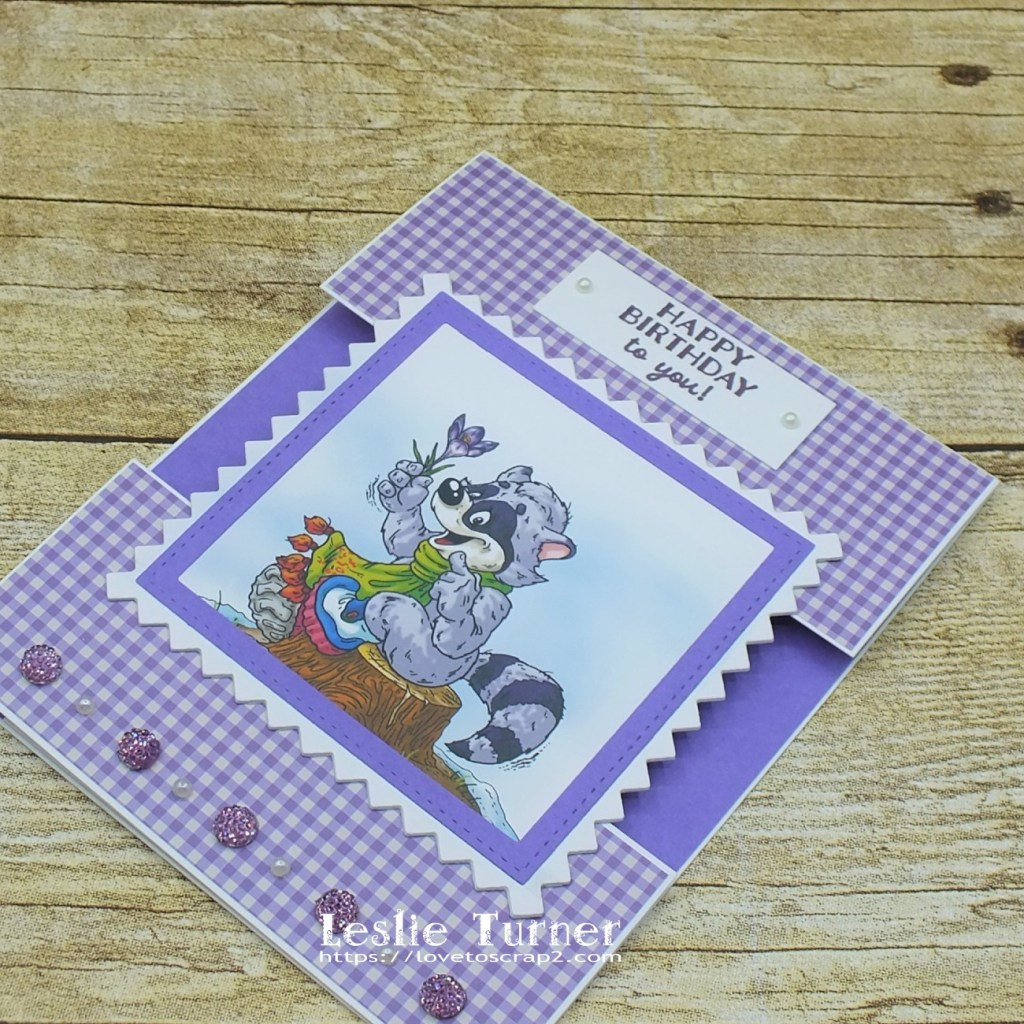 Hi friends! I hope your week has started off with a bang! I mean that figuratively, not literally, lol! Affiliate links are used in this post at no cost to you. I really appreciate your support! A new ‘Inspiration Photo’ challenge has started today over at The Outlawz Tuesday Color Challenge and our sponsor is Fabrika Fantasy, so be sure to come on over and play! You know how I love fun folds, so I created a hybrid split panel fold using Fabrika Fantasy’s Happy Raccoon digital image from my stash (which is currently included in their Digi Club). I’ve created several of these split panel folds over the past year and they are so much fun!
