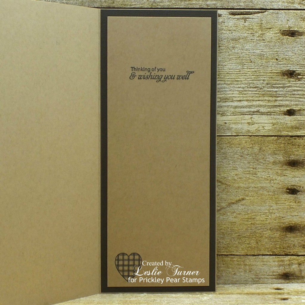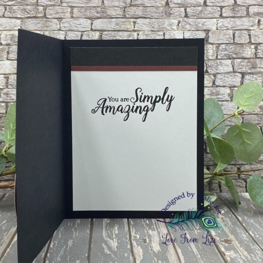 I cut the inside panel from Neenah Classic Crest Solar White cardstock and embellished it with strips of the dark gray and rust papers used on the front. I stamped a sentiment from our Simply Amazing stamp set in Versafine Onyx Black ink, which completed the card.