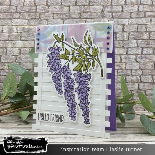I cut the card base from Neenah Classic Crest 110# Solar White along with a layering panel from CutCardStock Stardream Metallic Eris cardstock. I adhered the background to the card front along with the birds and flowers, popping up the birds with foam strips. I added a sentiment from the Here For You Clear Stamps & Dies which I stamped in Versafine Onyx Black ink and cut with the coordinating die. The finishing touch was adding a Brutus Monroe Emerald Green Flat Back Crystal to the center of each flower.