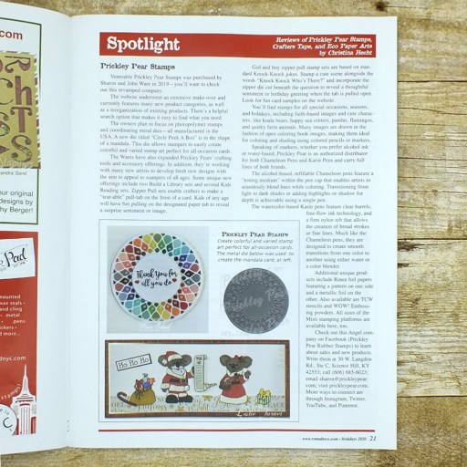 The lil’ gnome dude and sentiment on the base are from the Trinity Stamps North Pole Gnomes Stamp Set, stamped in Memento Tuxedo Black, Versafine Onyx Black, and Catherine Pooler Rockin’ Red and Eucalyptus inks. And I employed my new favorite ‘Wear Your Adhesive on the Outside’ technique using small circles from our 3D Foam Christmas Shapes with Metallic Transfer Foil Sheets Celebrate Colors. So fun!