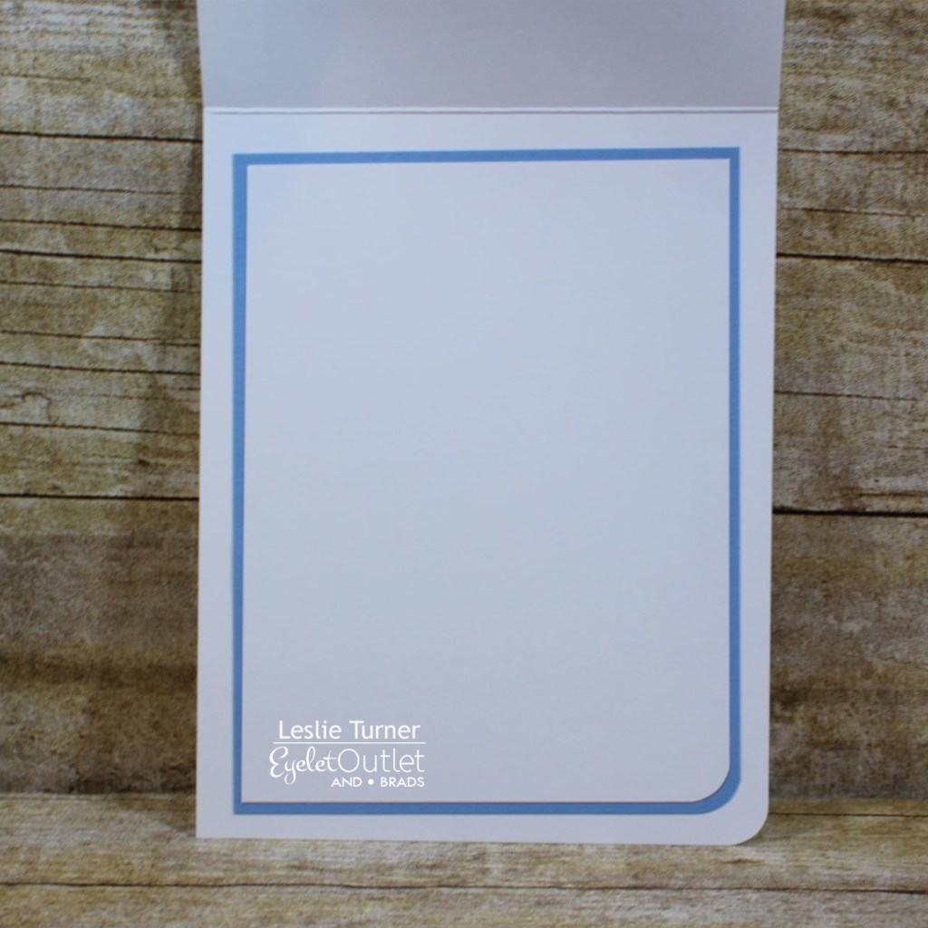 I cut the inside panel from Neenah Classic Crest 80# Solar White cardstock and layered it on CutCardStock Basis Medium Blue cardstock. Since this is a note card, I left plenty of room to write a custom message.
