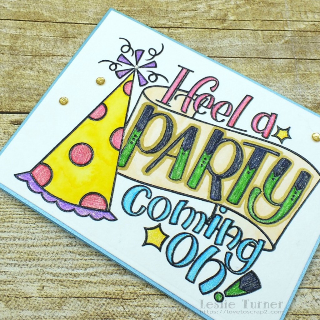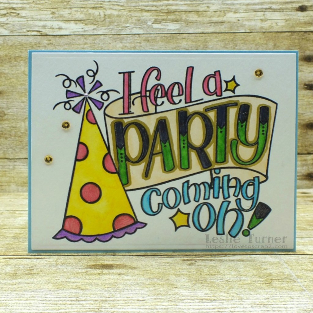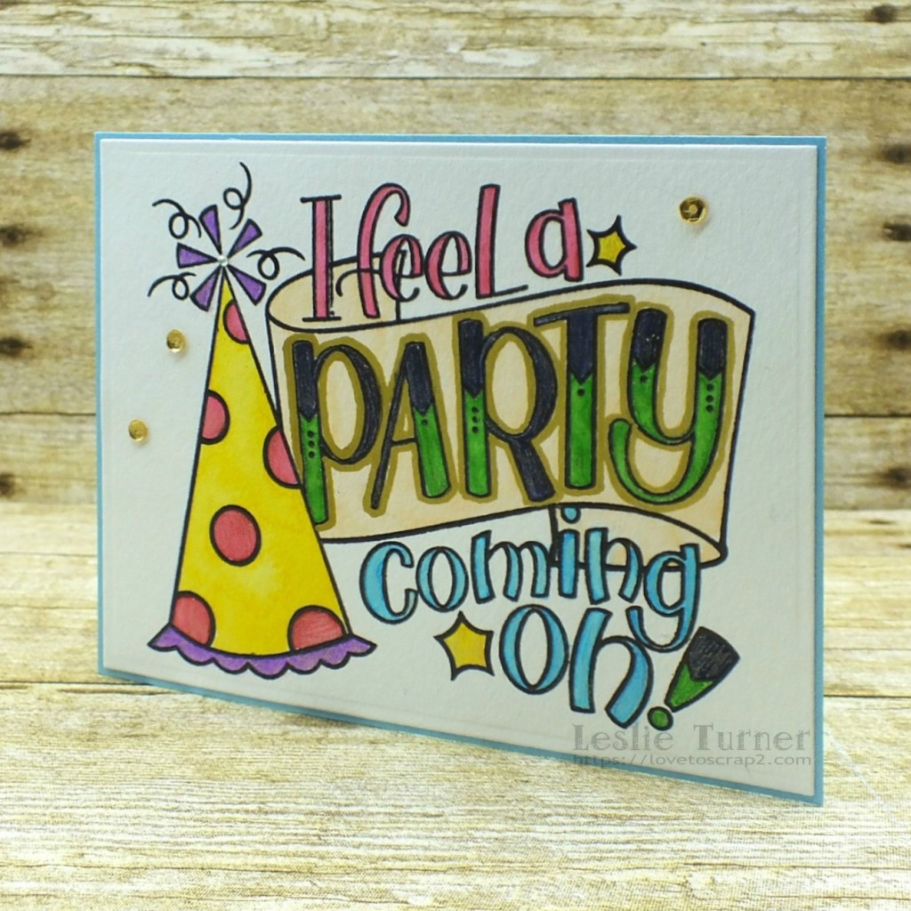This card was a blast. I love using large stamps because of the massive area to work on. I went with a bright color scheme, coloring the image with Spectrum Noir alcohol markers. I added an additional die cut party hat embellished with a white paint pen and a limeade Sprinkle. ;)