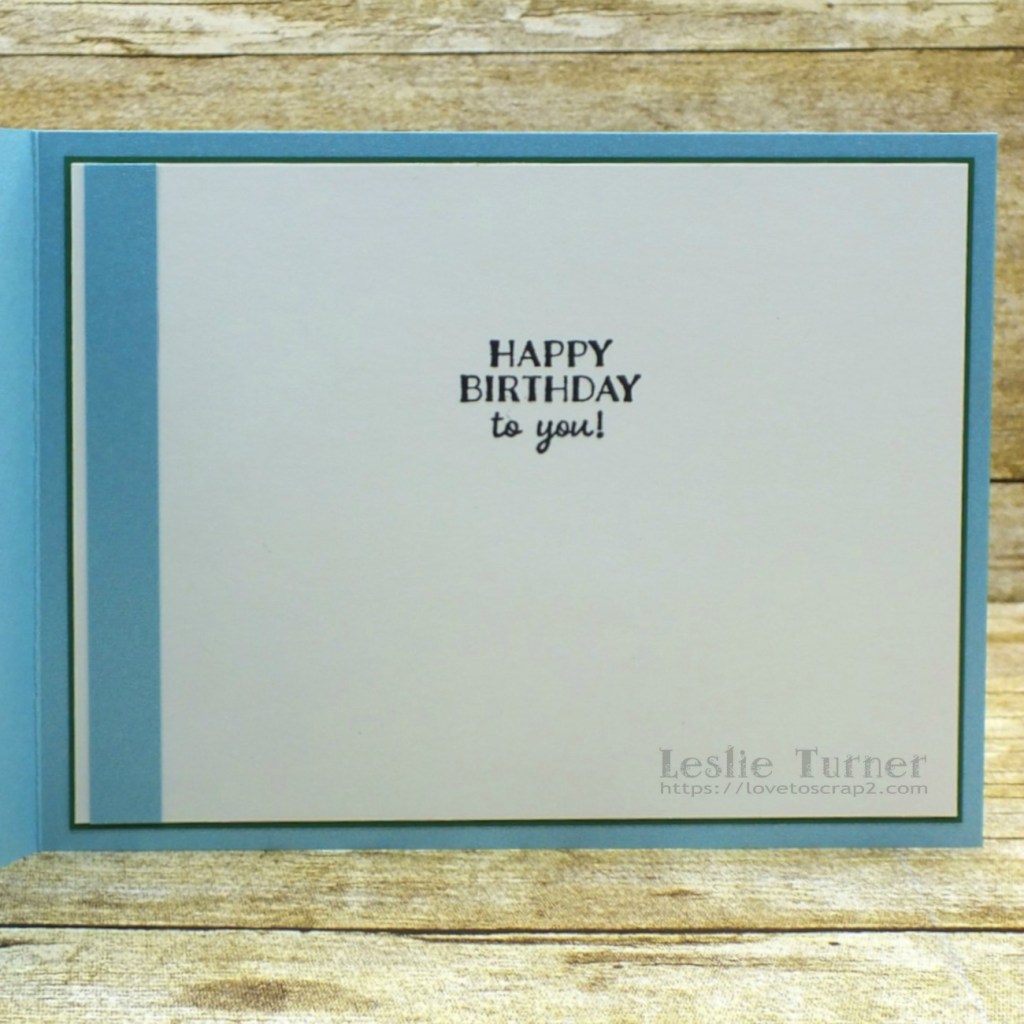 I embellished the inside panel with leftover strips of the papers used on the front, and stamped the birthday sentiment on a rectangle die cut.