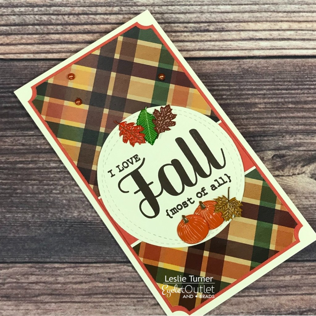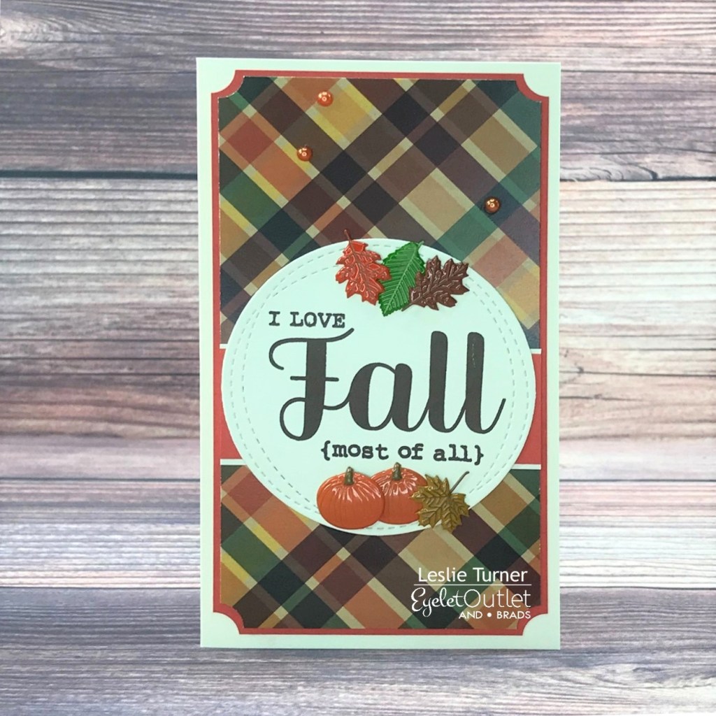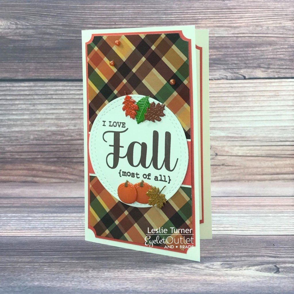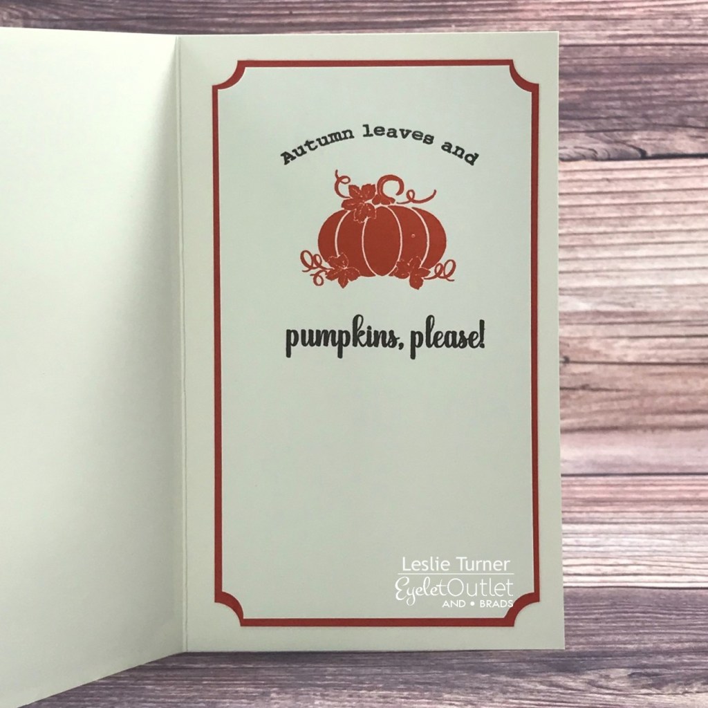 I cut the back panels from Basis Natural cardstock and embellished them with die cuts from the Autumn Foxes and Autumn Hedgehogs Die Cut Pieces. I stamped a sentiment from the Autumn Sentiments stamp set in Memento Rich Cocoa ink and layered the panels on Hot Fudge cardstock.