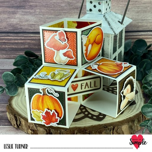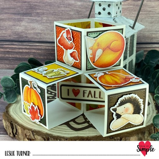 Hey everybody! Happy Weekend… it’s almost over! Just like that! I’m stoked to be back with another Keep It Simple DT inspiration project to share created with the new Autumn Charm Collection! Oh.My.Goodness. Just when I think they can’t come up with anything cuter than what they’ve already released… BOOM, there it is! There are so many adorable papers, stamps and dies, and die cuts in this collection, I can’t stand it! Pumpkins, mushrooms, foxes, hedgehogs and all kinds of critters! And you know how I love me some fun folds, so I created a triple cube card showcasing lots of papers and die cuts!