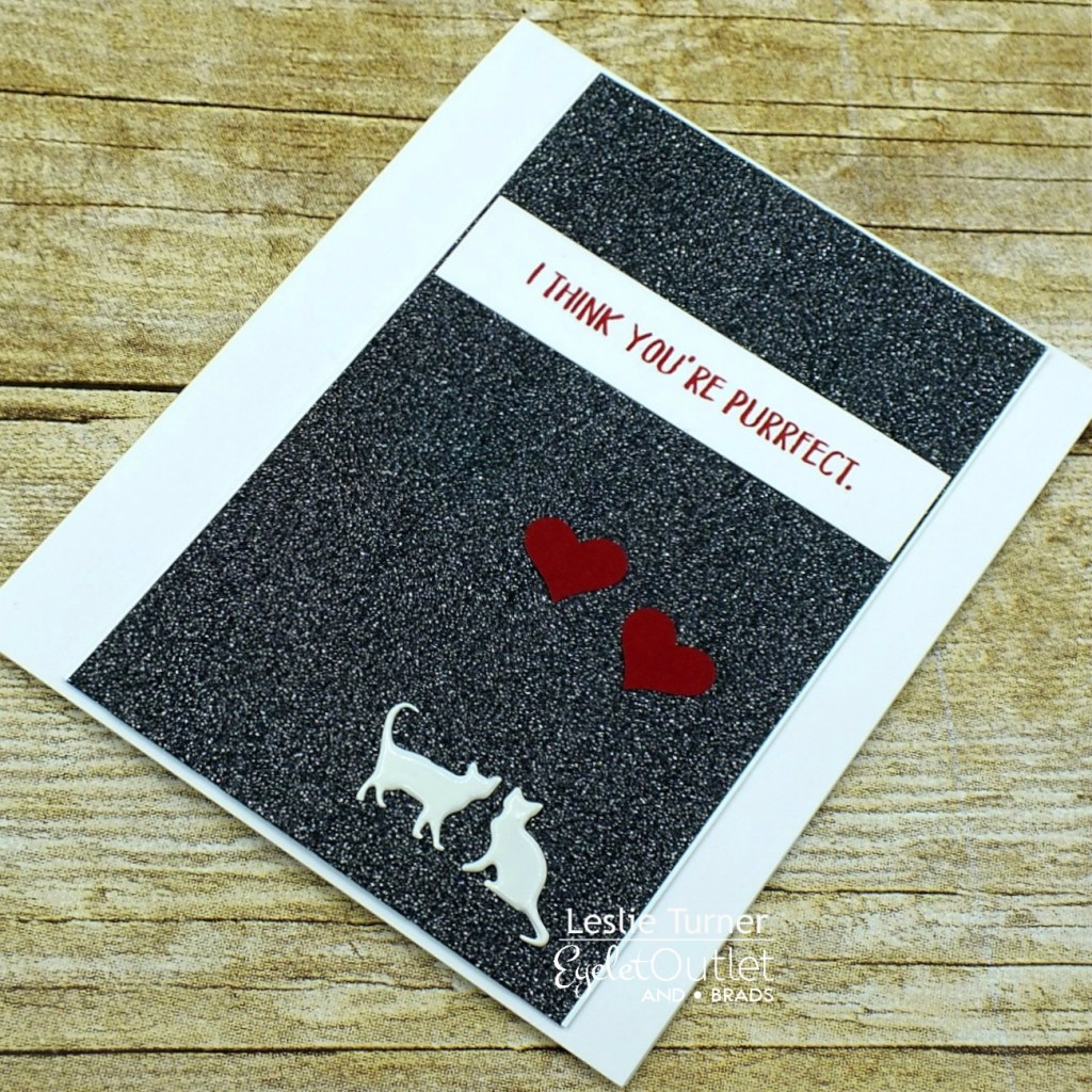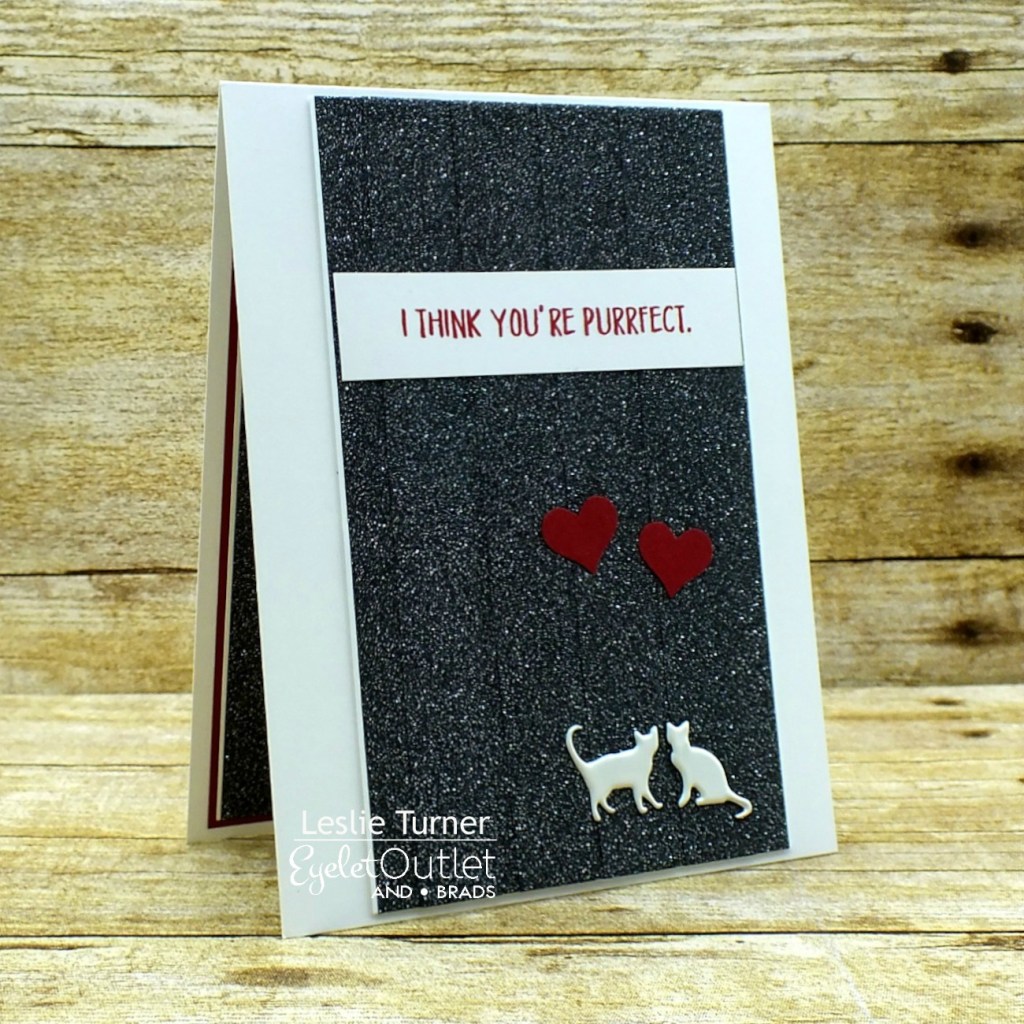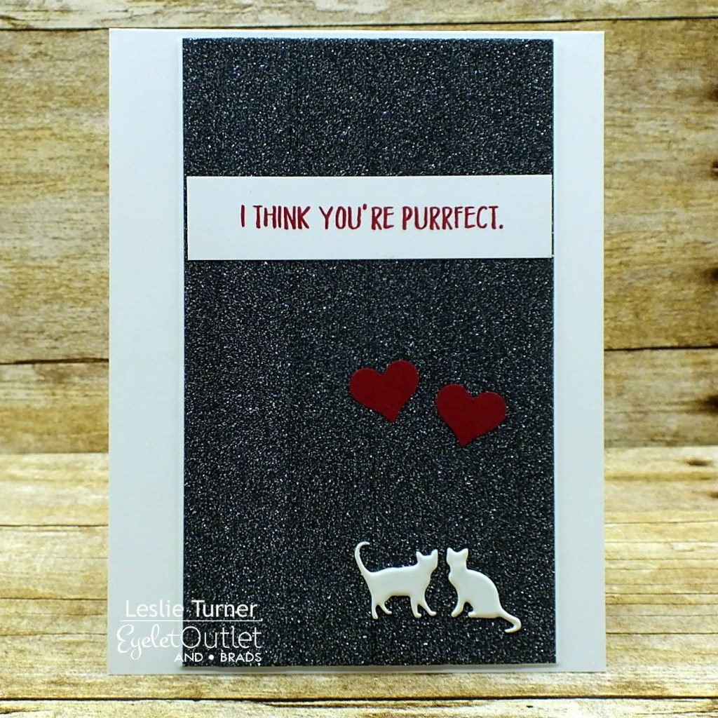 Hi everyone! Well, we’re right in the middle of August! Where has this year gone?! I’m happy to be back on the Eyelet Outlet blog today with another awesome DT inspiration project! I created a fun kitty card that would make a purrfect Valentine or anniversary card! I used black and white with a pop of red which is one of my favorite color combos!