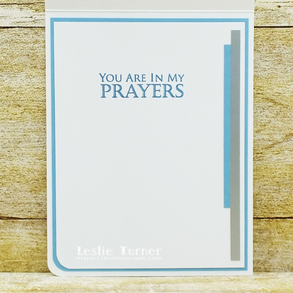 I cut the inside panel from Neenah Classic Crest 80# Solar White cardstock and embellished the right side of the panel with some leftover strips of metallic silver and blue cardstock, stamped the sentiment in blue ink, and layered the panel on blue cardstock. I love using cardstock scraps in unique ways! ;)