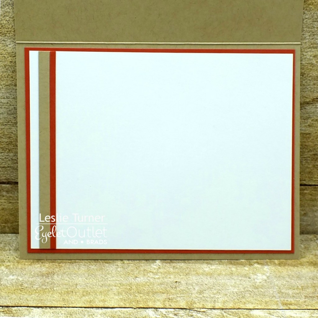 I embellished the inside panel with strips of kraft and orange cardstock. Since this is a note card, I left the inside blank, leaving plenty of room to write a custom message.