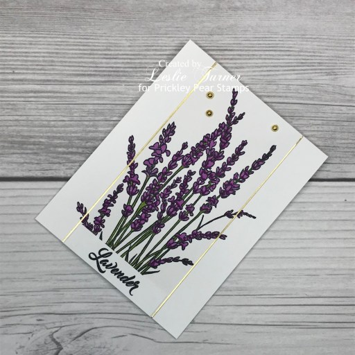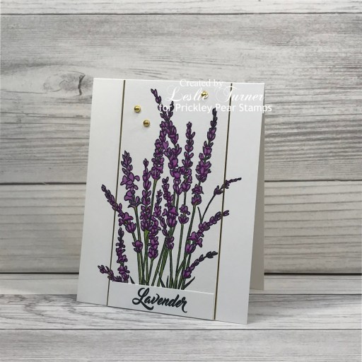 Hi friends! Happy Happy Friday! I hope your weather is wonderful and you have something fun planned this weekend! It IS Spring after all, and even though we did get a tad more snow last week (a weird random thing Mother Nature threw at us), our temps have been rising over the past few weeks and we’ve opened our windows several times to bring in the beautiful fresh air. We woke up to 41 degrees this morning and it’ll probably reach the low to mid 70s today! Update: It only reached 55 today with wind and rain! That’s okay, though, because we really need the moisture. I have a pretty card to share with you today that I created for Prickley Pear Stamps using their new Sketched Florals Lavender stamp set! OMGoodness, this stamp set is so pretty and what a delight it is to color… it only took two alcohol markers and a Pitt Artist pen!