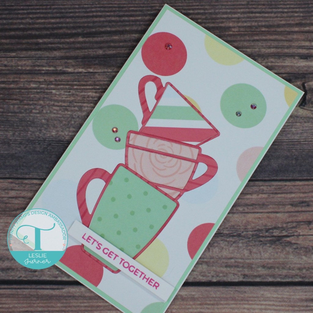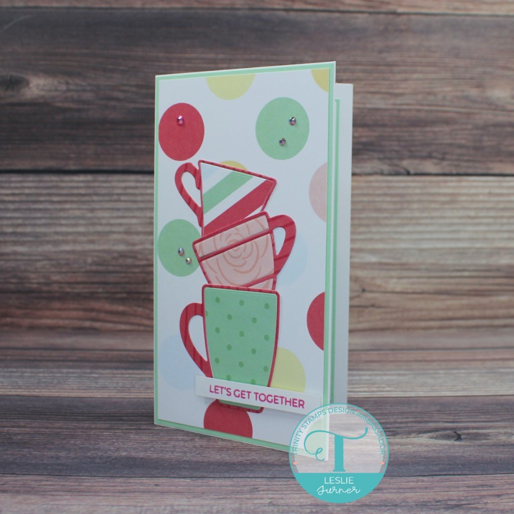 Hi everybody! I hope you’re having a good weekend and maybe getting a little crafting in?! We are having some beautiful weather considering we’ve already had our first snow, but it’s pretty chilly in the northern part of the state. Affiliate links are used in this post at no cost to you – I really appreciate your support! I have a fun Trinity Stamps Ambassador inspiration project to share this morning featuring the free cup dies that are tucked into Trinity Stamps orders. They are so adorable and I thought stacking them on a mini slimline would be perfect! I’ve had this card made for a couple weeks and I kind of wish I had waited until this past week to make it after receiving my mini slimline layers die set! Oh well… ;)