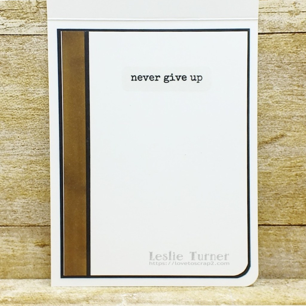 I cut the inside panel from Neenah Classic Crest Solar White cardstock and embellished it with a wide strip of Neenah Classic Crest Solar White cardstock that I colored with the tan alcohol marker along with a narrow strip of black cardstock. I applied another STAMPlorations Shine Bright Clear Stickers sentiment and layered the panel on black cardstock.