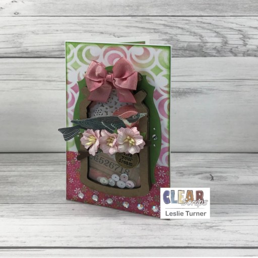 Hi friends! Happy Thursday! Is the weather still pretty chilly where you are or is it warming up any? We are seeing very gradual increases in our temps during the day although we did recently get more snow, and we sure need the moisture. Overall, though, our winter has been pretty mild so we’ll probably have a warm summer! I’m thrilled to be back on the Clear Scraps blog today with another awesome DT inspiration project! I created a pretty encouragement card in a green and pink color combo featuring our Mini Shaker Milk-Can and our 5×9 Circles Dots Stencil. Both products are new in the store and really fun to play with!