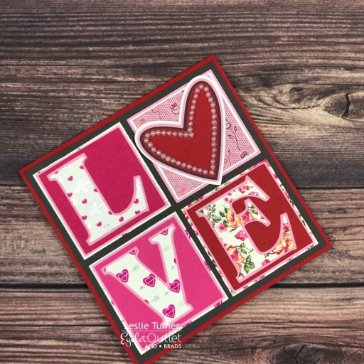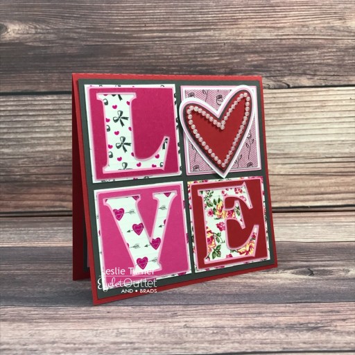 Hi everyone! A very Happy Saturday to you – I hope you’ve had a great week! Affiliate links are used in this post at no cost to you – I really appreciate your support! I’m stoked to be back on the Eyelet Outlet blog today with another awesome DT inspiration project! I have one more Valentine to share before the day of love arrives! This block card features our Valentine Washi Tape which I used on the background of all four blocks, and White Pearl Bling Strip that I used to embellish the heart. Another fun and easy card created with my Scan N Cut!