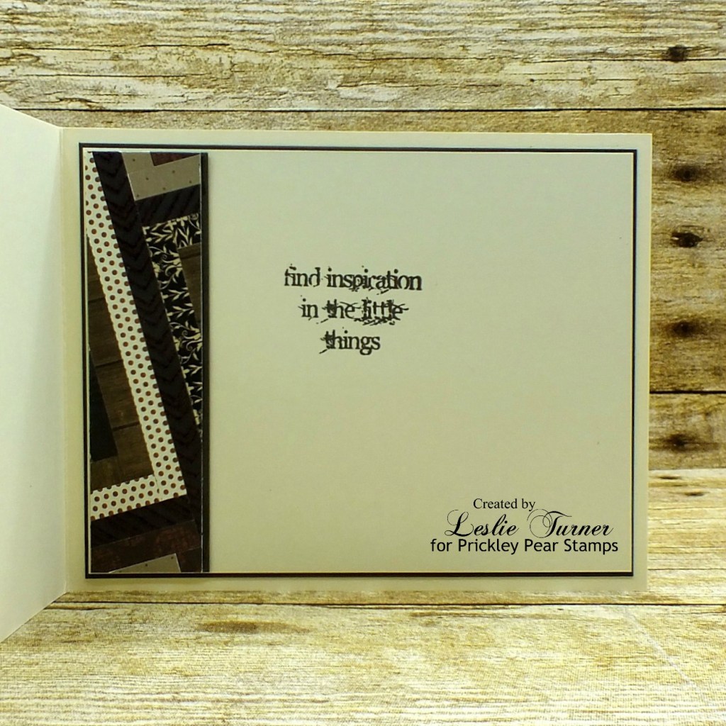I cut the inside panel from Neenah Classic Crest Baronial Ivory cardstock and embellished it with leftover strips of the debossed panel on the front and the Basis Brown used for the card base. Since this is a note card, I left the panel blank with plenty of room to write a custom message.