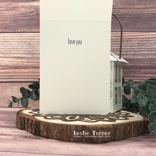 I cut the inside panel from Basis White and embellished it with leftover strips of the patterned paper and brown cardstock used on the front. I added another sentiment sticker and layered the panel on brown cardstock.