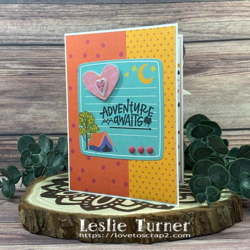 ACCESSORIES: Tonic Studios 12″ Guillotine Paper Trimmer, Tombow Mono Dots adhesive, Bearly Art precision craft glue, Big Shot, 1/2″ double-sided foam strips, Keep It Simple Hello Adventure Enamel Dots