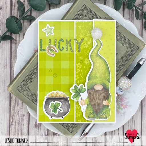 Hey everybody! Happy Thursday – I hope you’re having a great week. I’m stoked to share a Keep It Simple DT inspiration project with you today created our new Back to Basics 6×9 Lime Collection Pack! OMGosh, I totally love this color. Green (in any variation) has been my all-time favorite color since I can remember, so I thoroughly enjoyed making this. I’ve created quite a few of this version of a triple fold over the years and decided to give this one a little ‘faux’ twist by adhering the second flap down to the card base, thus giving it the ‘faux’ look of a triple fold. I thought that added a little more fun to an already fun design. And of course, these die cuts from our Lucky Day Collection make it even more fun… along with my handmade pom-pom on his hat! ;)