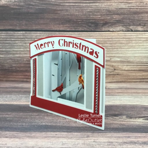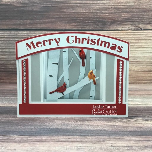 Hi everyone! A very Happy Saturday to you – I hope you’ve had a great week! Affiliate links are used in this post at no cost to you – I really appreciate your support! I’m stoked to be back on the Eyelet Outlet blog today with another awesome DT inspiration project! You all know that I create Christmas crafts all year long, and this pretty card features our Cardinal Brads, Cardinal Profile Brads, Female Cardinal Brads and Clear Jewel Bling Strips. I absolutely love cardinals and thoroughly enjoyed creating this card with my Scan N Cut. Many people believe that a loved one is watching over us if a cardinal appears, and that’s what I always think of when I see one! ;)