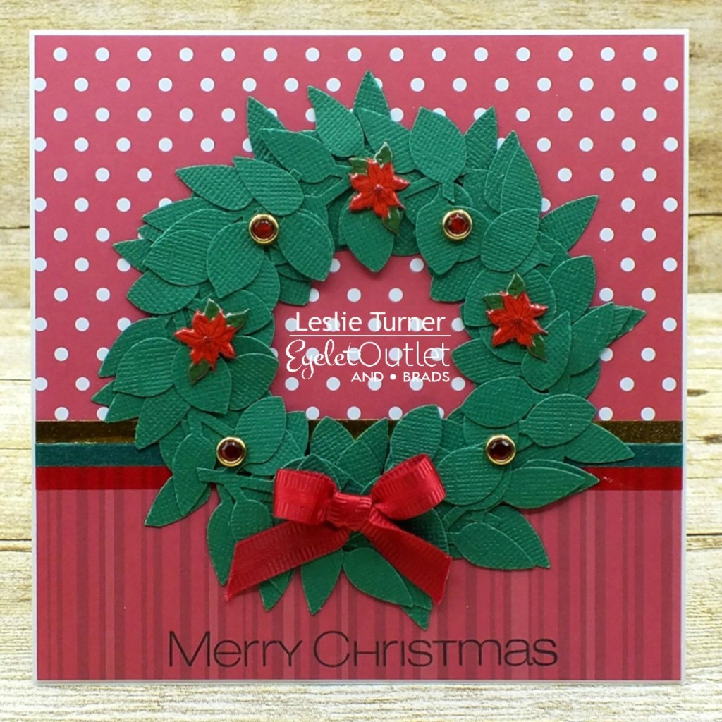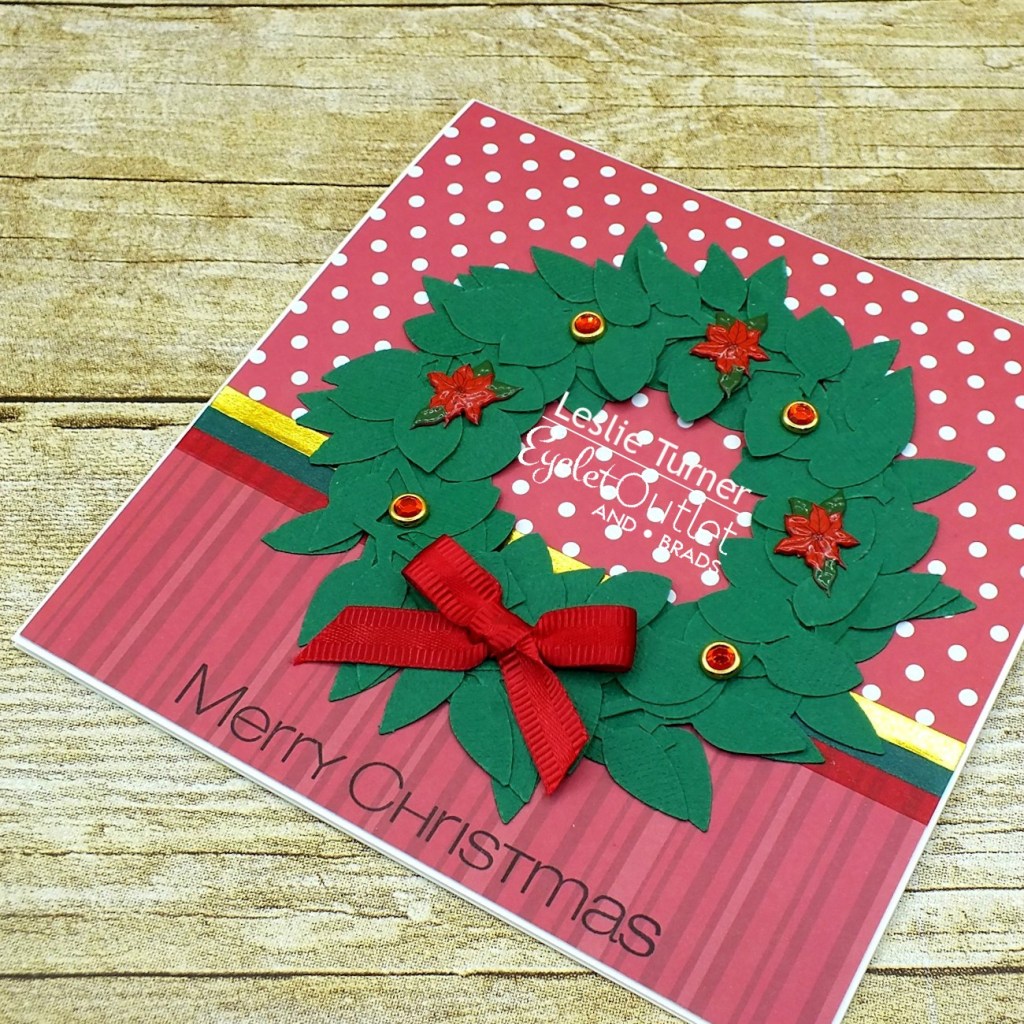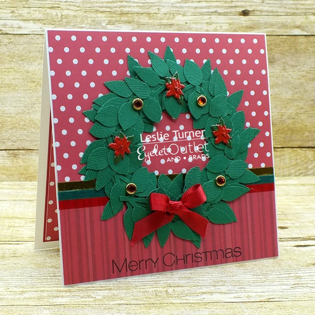 Hi everyone! Hope you’ve had a great week and have something fun (and safe) planned for this weekend! I’m happy to be back on the Eyelet Outlet blog today with another awesome DT inspiration project! I CASE’d my own Autumn design from a few months back and created a pretty Christmas card featuring a wreath embellished with some gorgeous brads!