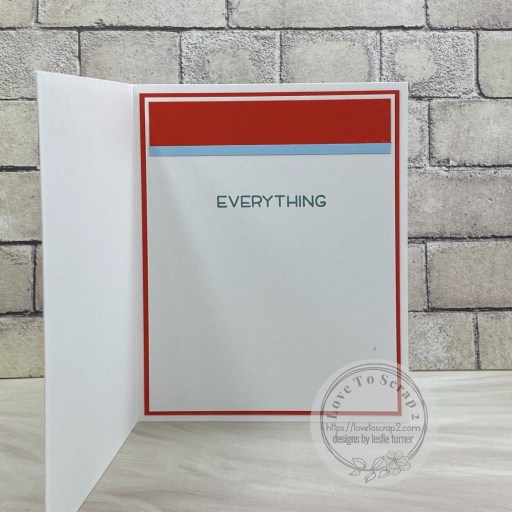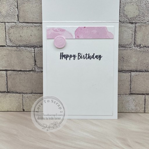 I kept the inside clean and simple also, adhering a narrow strip with MAMBI skinny blue washi tape across the top and stamping a sentiment from the Stampin’ Up And Many More stamp set.