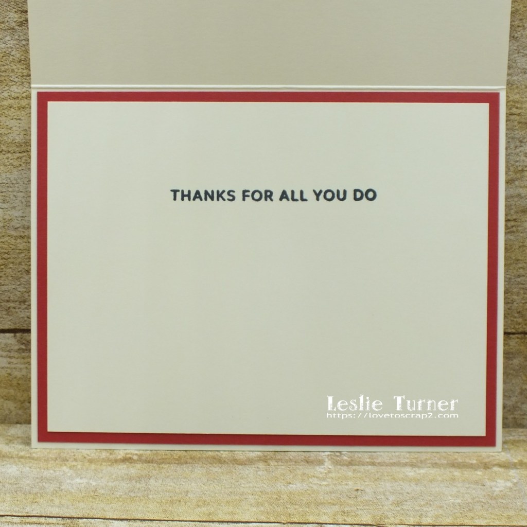 I cut the inside panel from Neenah Classic Crest Baronial Ivory 80# cardstock, stamped the sentiment and layered the panel on CutCardStock Basis Red cardstock.