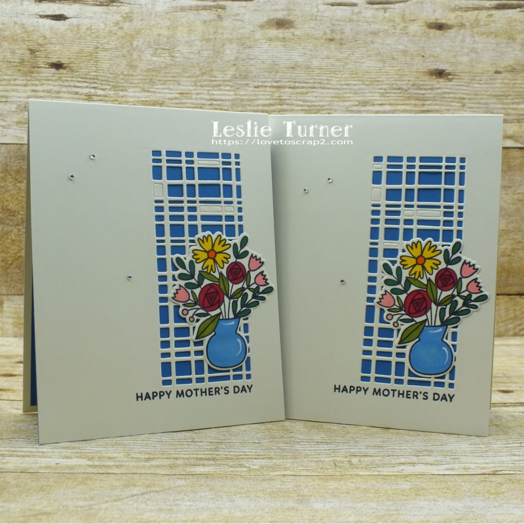 Hi everybody! I have a couple more commissioned Mother’s Day cards to share this afternoon which I scheduled a good piece out from this morning’s post. We’re out of pocket for a couple days and I didn’t want you to get bored, lol! Affiliate links are used in this post at no cost to you. I really appreciate your support! I created these two cards the same day as the Mother’s Day Wreath card that I shared a couple weeks ago since I had the Sizzix Festive Repeat Thinlits out. I really love the effect the apertures have on the front of a card!