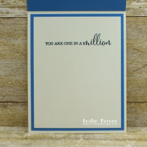 I cut the inside panels from Neenah Classic Crest Baronial Ivory 80# cardstock, stamped a Clearly Besotted sentiment (two different ones) on each one in black ink and layered the panels on the blue cardstock. Kept the insides very simple.