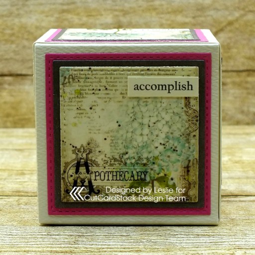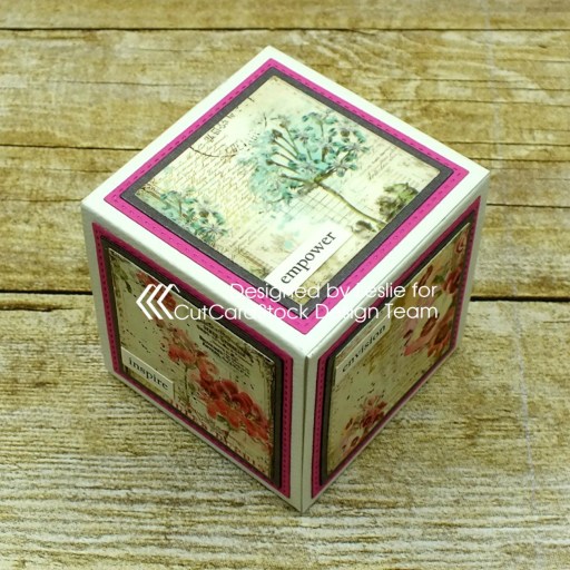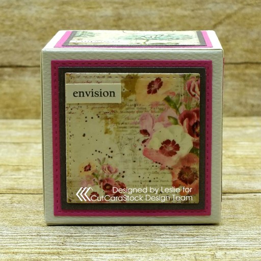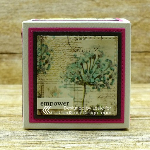 I cut the cube base from CutCardStock Curious Metallic Night cardstock and set it aside. My template is HERE. I stamped the cat images on Neenah Classic Crest 80# Solar White cardstock, colored them quickly with Karin Brush Markers (no blending or anything fancy) and cut them with the My Favorite Things Stitched Pinking Edge Square STAX Die-namics. I cut six frames from Neenah Classic Crest 110# Solar White cardstock using the My Favorite Things Stitched Pinking Edge Square STAX Die-namics and My Favorite Things Stitched Square STAX Die-namics which I adhered to the colored images. I adhered the images to the cube and added the computer-generated motivational sentiments, and then assembled the cube. The images adhere much better if you can press down on them while the cube base is flat versus already assembled.