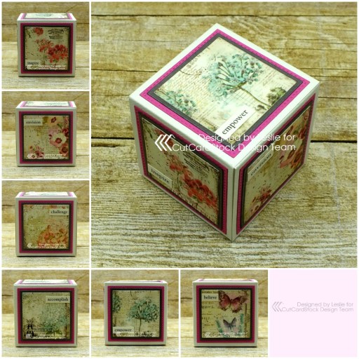 If you know me, you know that I’m a certified ATC geek and I just had to create another Artist Trading Cube to add to my growing ATC collection of cards, coins and cubes! This one features stamped cat images from a Laurel Burch mini stamp set I’ve had in my stash for a while which I colored with Karin Brush Markers. The ten stamps in this set are 3″ x 3″ which are the perfect size for a 2-1/2″ cube. Four of the ten stamps are cat images and since there are six sides to the cube, I duplicated two of the images but colored them differently. The computer-generated sentiments were left over from another project so I scooped them up to use on this cube – worked out beautifully! ;)