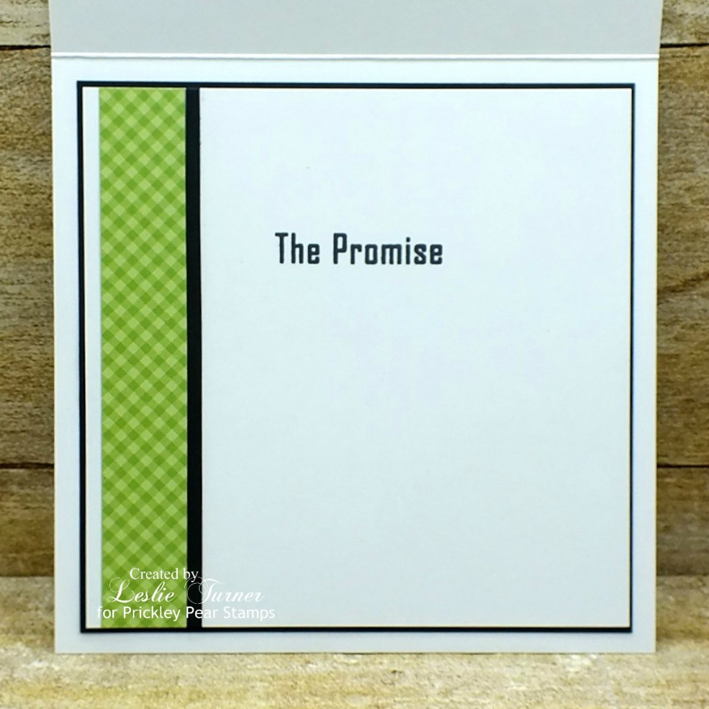 I embellished the inside panel with some of the green plaid paper used on the front and a thin strip of black cardstock, stamped the greeting and layered the panel on black cardstock.