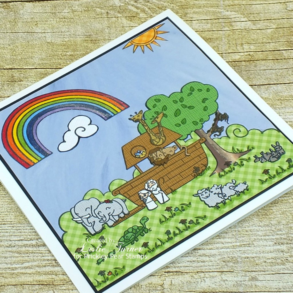 Howdy peeps! Top of the morning to you! I’ve popped in this morning to share a sample I created for Prickley Pear Stamps using the new Noah’s Ark stamp set! OMGoodness, this is THE most fun stamp set to play with – there are so many adorable elements! I haven’t done paper piecing in a while and thought this would be a fun stamp set to do that with! Lots of fussy cutting but definitely well worth it! ;)