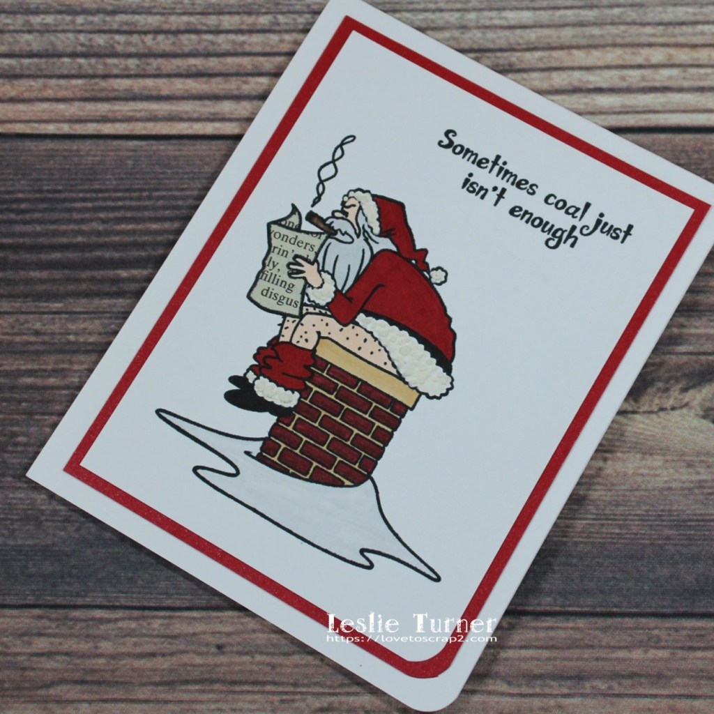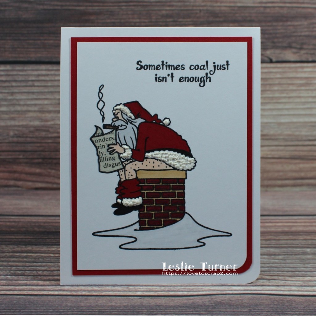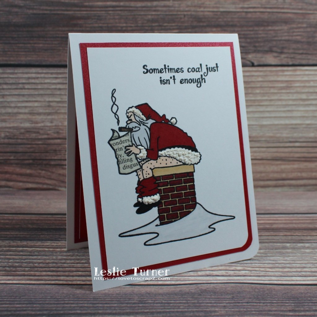 Hi friends! I hope you are having an absolutely splendid week! It’s Hump Day and our feral dad will be headed to Neuterville early tomorrow morning! It’s so stressful getting ferals ready to go to the vet because they have to be trapped, they’re scared and get really irritated, they can’t be trapped too early because they need bathroom access, etc. etc. But feral mom is doing well with her one remaining kitten that’s now about three weeks old, and she’ll be getting spayed in mid-November. Then her baby will get spayed/neutered in March at six months. Hopefully, Lord willing, this will be the end of the feral business… “Ed, are you listening?!” Affiliate links are used in this post at no cost to you. I really appreciate your support! I have an off-color Christmas card to share this evening… one I made a couple weeks ago and laughed the entire time. ;) My online friend, Deborah, shared a card a while back that she created with this same Whimsy Stamps set, and I just howled. Of course, I HAD to have the stamp set, and while shopping, I found a couple other off-colored ones that I bought as well, lol!