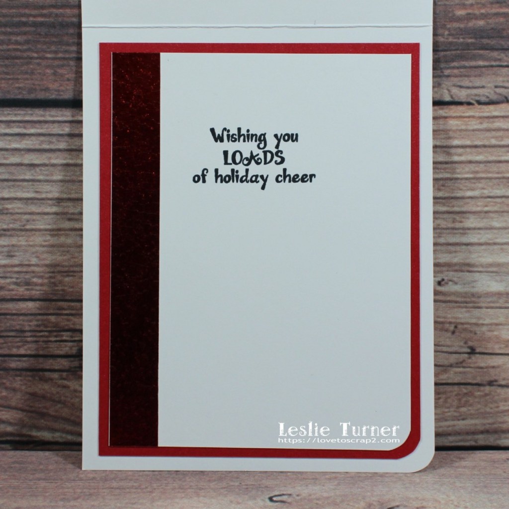 I cut the inside panel from Neenah Classic Crest Solar White cardstock and embellished it with a strip of red foil washi tape, stamped the sentiment in black ink, and layered it on red cardstock.