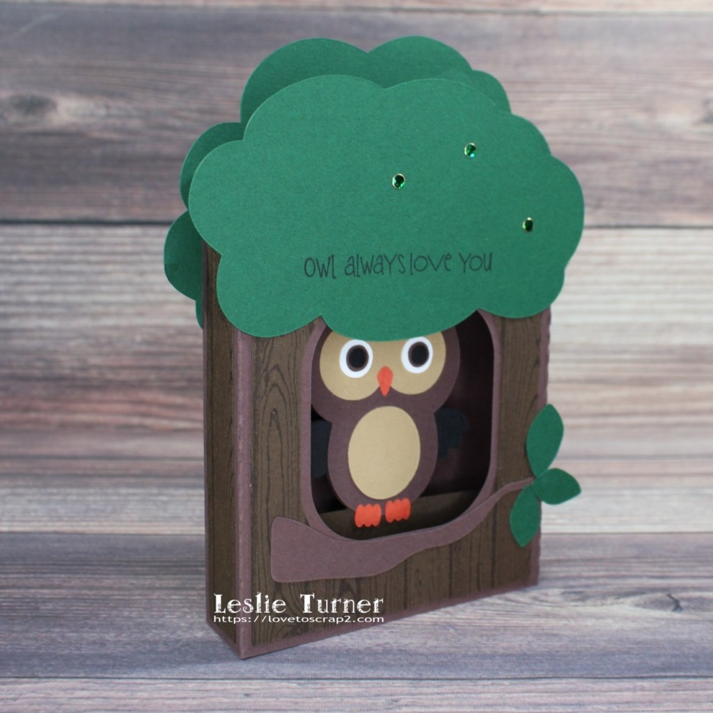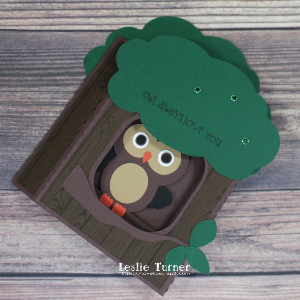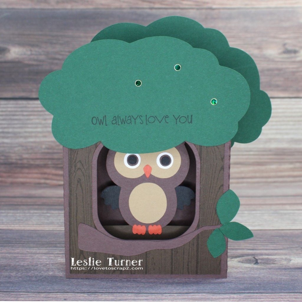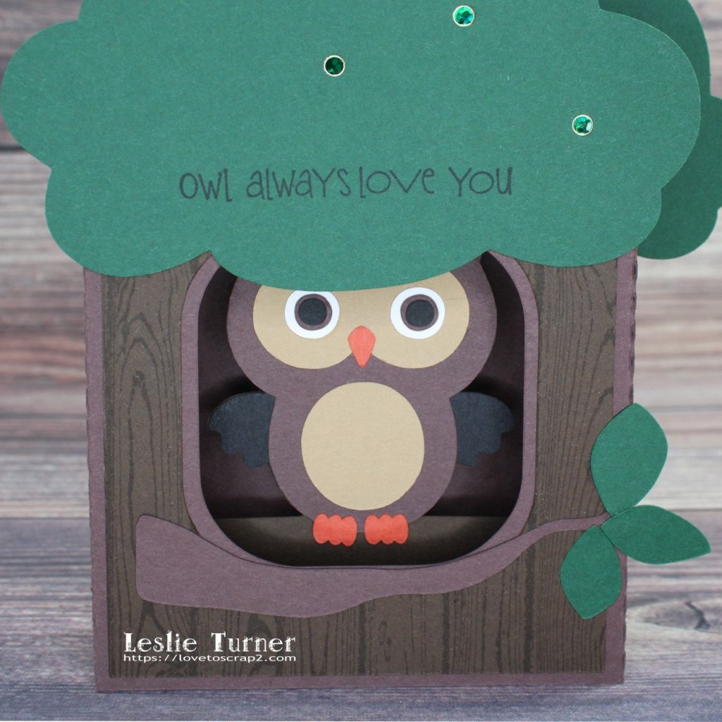 Hey everybody! Top of the morning to you! I hope you’re having a great week! Affiliate links are used in this post at no cost to you – I really appreciate your support! I shared a box card that we sent to our youngest grandson yesterday, so today I’m sharing an another box card that we sent to our youngest granddaughter at the same time. This adorable Owl Box Card is another one from My Scrap Chick and turned out so stinkin’ cute with the little owl peeking out of the hole in the tree! And of course, I lucked out having the perfect stamp set to use!