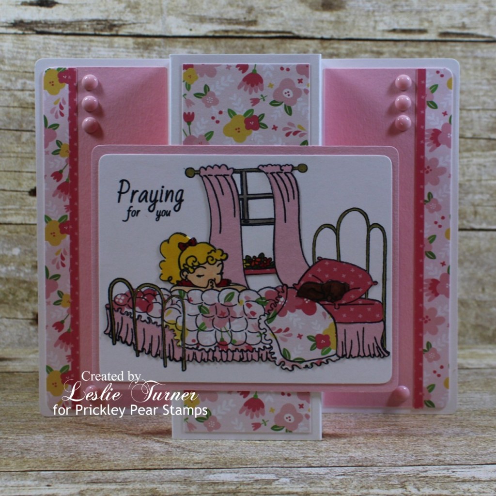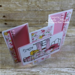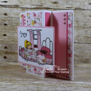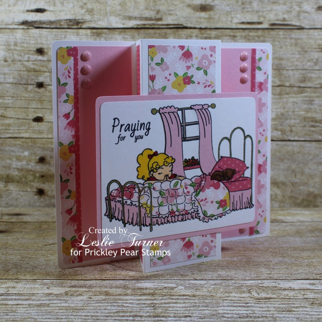 Hey, everybody! Can you believe we’re headed into the middle of March already?! Whoosh… won’t be long before another month is on the books! Affiliate links are used in this post at no cost to you – I really appreciate your support! I’ve popped in this morning to share another sample I created for Prickley Pear Stamps with one of THE most adorable stamp sets ever! This card is a standing triple panel card and features our Praying For You stamp set which I paper-pieced using some sweet coordinating patterned papers from Lawn Fawn. I think I have made one card previously with this fold – and it was a number of years ago – so I thought it was time to bring it back around.