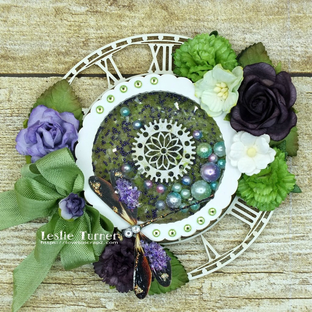 Reneabouquets Beautiful Box Clock Shaker Box Chipboard DIY Kit, Beautiful Beads Citrus Breeze Iridescent Pearls, Beautiful Beads Mermaids Tail Iridescent Pearls, Gawdie Girl Lime Green Chunky Glitter, Gawdie Girl Diamond Fine German Glitter Glass, No Hole Dark Purple Glass Microbeads, Tuscan Vineyard Roses And Leaves Mulberry Paper Flower Set, Beautiful Bits Gears Laser Cut Chipboard and Tiny Treasures Tranquil Glitter Glass Paper Dragonflies