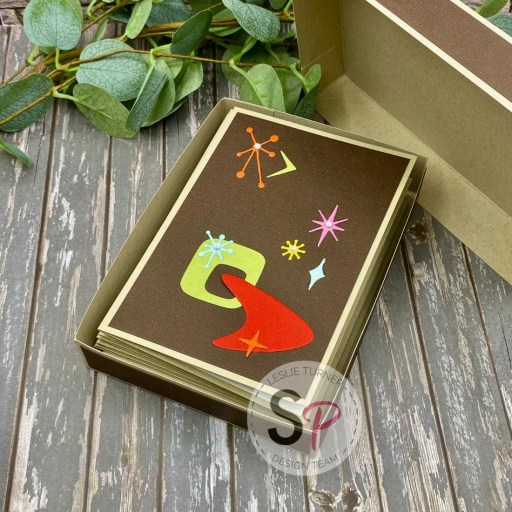 I used 80# Solar White for the inside panel. Super fun and easy card, which would be a good one to mass-produce for those on your Christmas list!