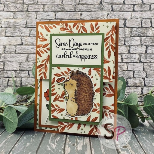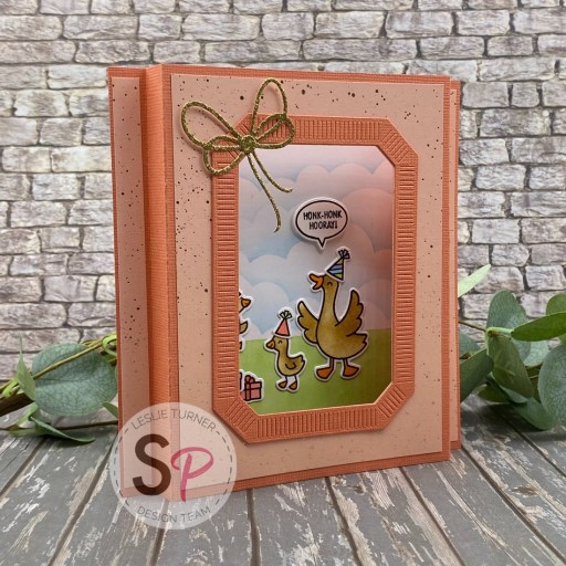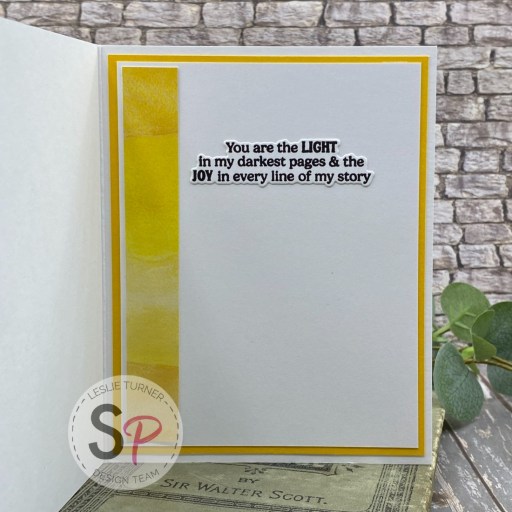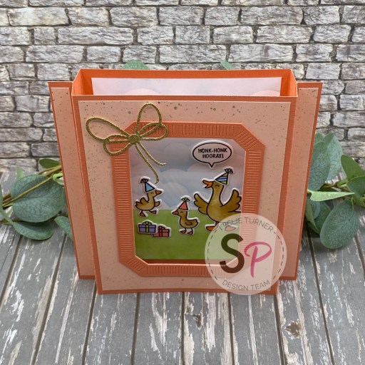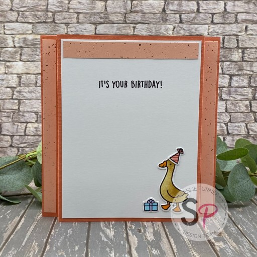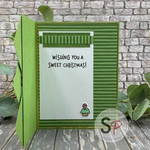 This is my own design so be sure to check out the tutorial on the Scrapbook Pal blog to see how to make it. I used CutCardStock Pop Tone Gumdrop Green and Bright Gold Foil, in addition to Neenah Classic Crest 110# Solar White for the front sentiment and images. The adorable patterned paper is from Lawn Fawn (LOVE).
