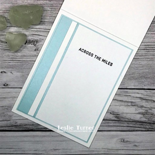 I cut the inside panel from CutCardStock Basis 80# White cardstock and embellished it with strips cut from CutCardStock Stardream Metallic Aquamarine cardstock and a scrap of Basis 80# White cardstock. I stamped the sentiment from the same stamp set in black ink and layered the panel on Aquamarine cardstock.