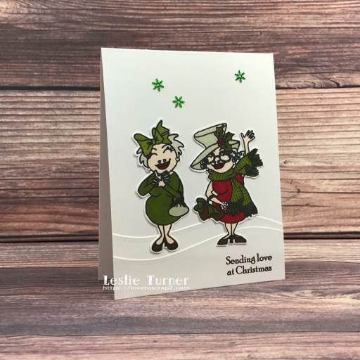 Hi friends! Happy Thursday to you all! Well, we’re another couple months closer to Christmas! Are you closer to being ready for that round jolly man to appear?! Our new challenge is live this morning over at Love To Craft Challenge Blog and I’m super stoked to share my DT inspiration project for LTCCB #70 – Anything Goes! I’ve created a Christmas card for this challenge using the adorable Prickley Pear Stamps Two Snow Ladies stamp set and these two lady birds have it going on! This was a fun card to color and put together! Green is my favorite color so I went with varying shades of green with a pop of red!