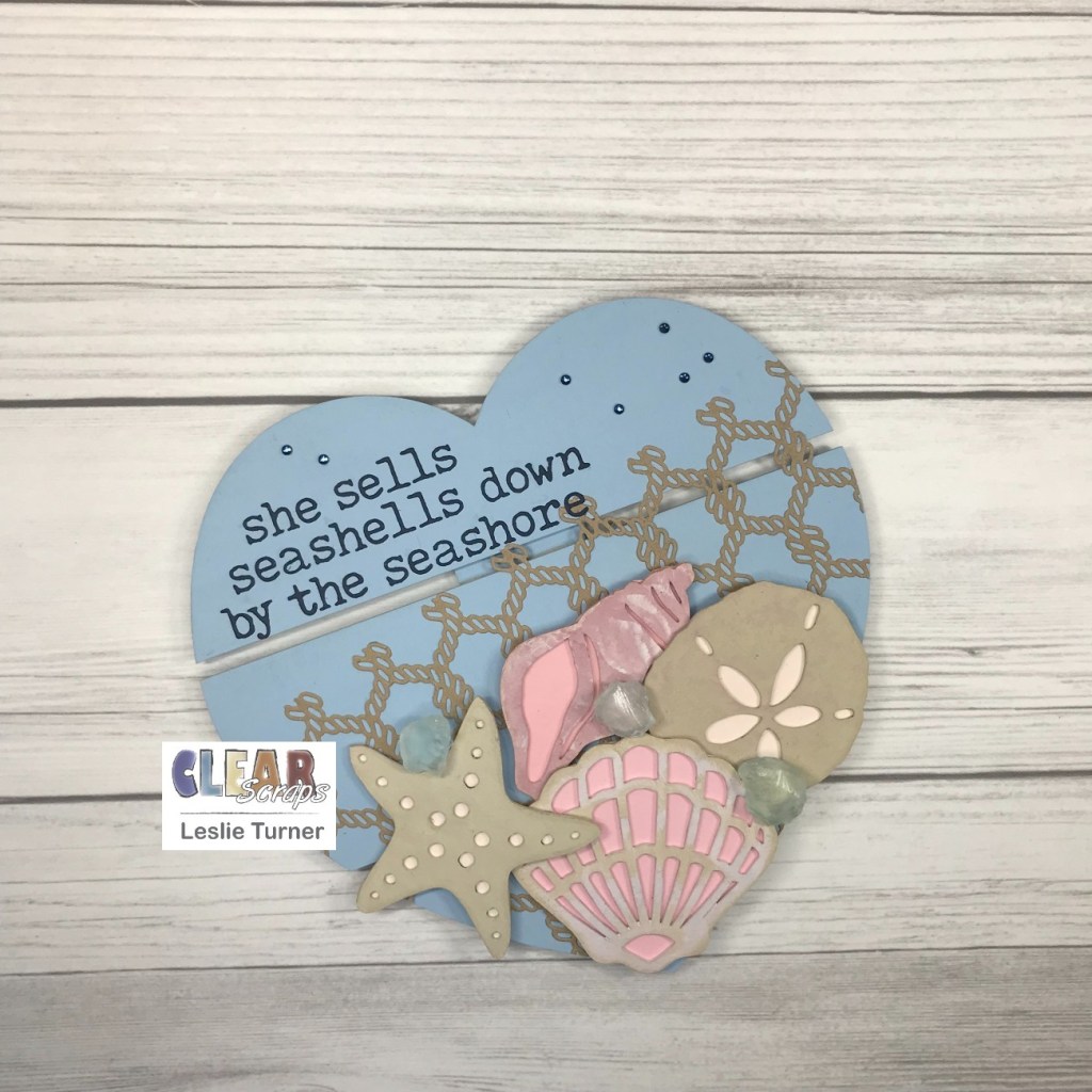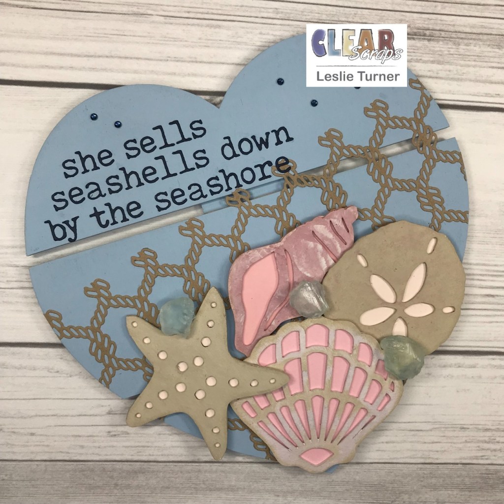 Hey, everybody! So hard to believe that we’re a little over a week into December already! This year has literally flown by and it won’t be too much longer before the jolly round man will make his appearance! I’m thrilled to be back on the Clear Scraps blog today with another awesome DT inspiration project! Even though we’re almost officially into Winter, I’m squeezing in one more Summer-themed project! This home decor piece features our Medium Heart DIY Pallet Shape embellished with our Sand Dollar Chipboard Embellishments and Fan Shells Chipboard Embellishments along with a few other supplies! Can’t tell you how much I enjoyed creating this! ;)