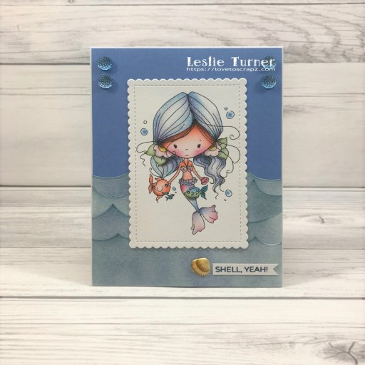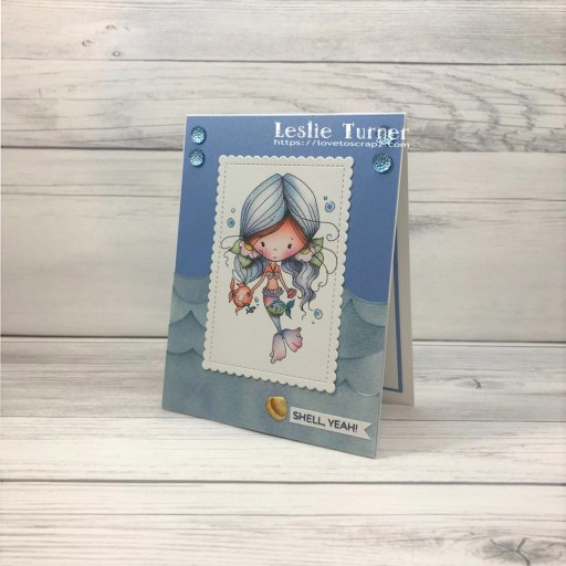 Hey y’all! It’s a beautiful 42 degrees here (mid-day) in southwestern Colorado – the sun’s out and the sky is blue! Couldn’t ask for a better day! Affiliate links are used in this post at no cost to you – I really appreciate your support! There’s a whole lotta fun going on over at The Outlawz Challenges and I’ve created a cute card to enter into the current Sunday Songs and Rhymes Challenge! Polkadoodles is the sponsor this time and we were given the Mermaid Song from which to find inspiration, so I thought it only fitting to use the Polkadoodles Winnie Mermaid Kisses digital image which I combined with the fun Trinity Stamps Summertime Sentiments stamp set.