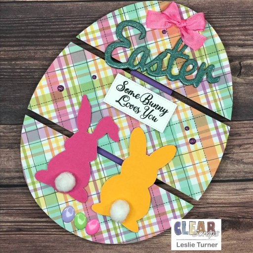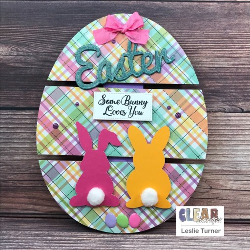 Happy Monday, everybody! Hope you had a great weekend and your weather is warming up… even just a little bit! It’s absolutely gorgeous here and I almost feel guilty for not being outdoors enjoying it! I’m thrilled to be back on the Clear Scraps blog today with another awesome DT inspiration project! I created a fun Easter home decor project featuring our Medium DIY Egg Pallet Shape, Easter Chipboard Word Title and Bunnies Chipboard Embellishments. Spring is my second favorite season and I love everything that Easter represents!