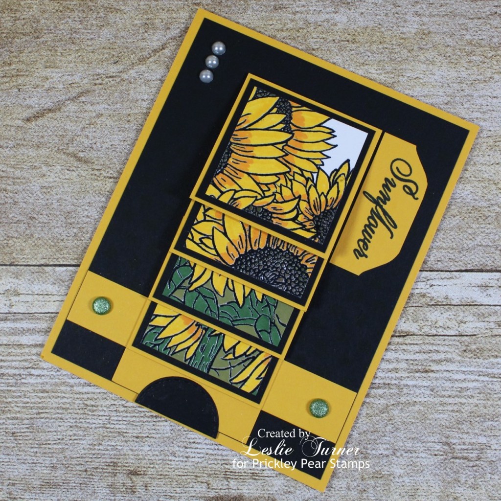 And one more look at each waterfall panel as they come down. Waterfall cards are so much fun and I can’t believe I’ve only ever made two of these in all the years I’ve been crafting! And the sunflower is my favorite flower, so you can only imagine how much I love this Sketched Florals Sunflower stamp set!