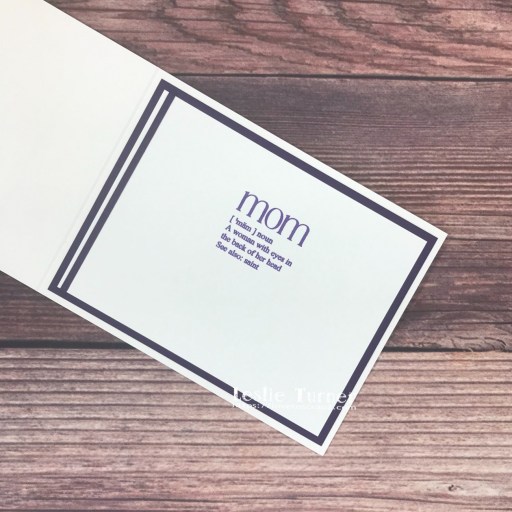 The inside was super simple as well, consisting of a strip cut from CutCardStock Basis Orange cardstock and a sentiment (from the same stamp set) stamped in Memento Tuxedo Black ink.