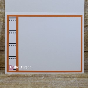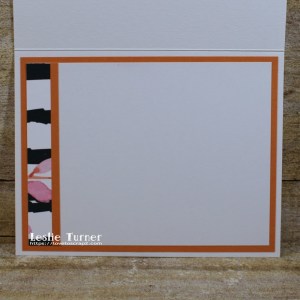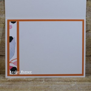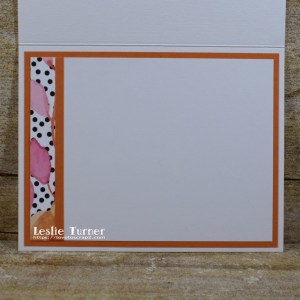 I cut the inside panels from Neenah Classic Crest 80# Solar White cardstock, embellished them with matching strips of the digital paper and a narrow orange cardstock strip, and layered the panels on orange cardstock. Since these are note cards, I left the inside panels blank to write a custom message in each.